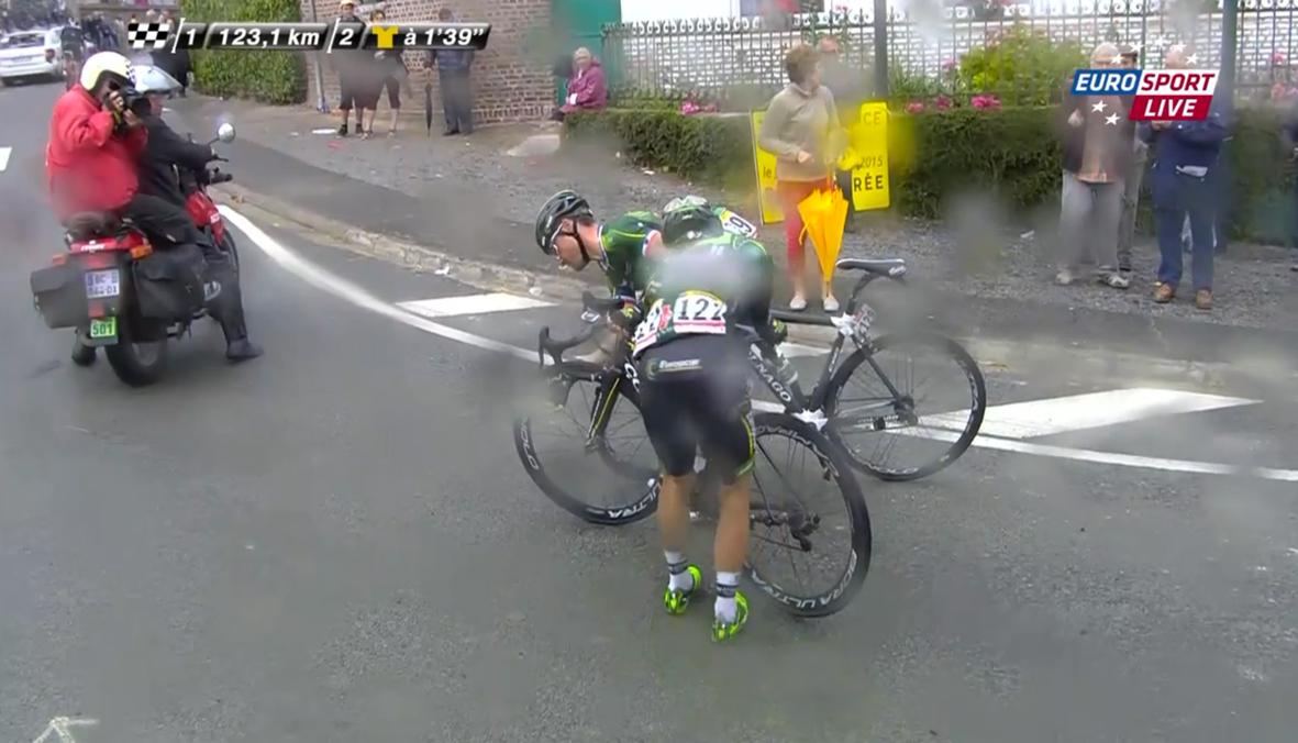 greg van avermaet (bmc), arredondo, ve birçok cannondale-garmin’li ikinci bir kazaya karışmışlar.