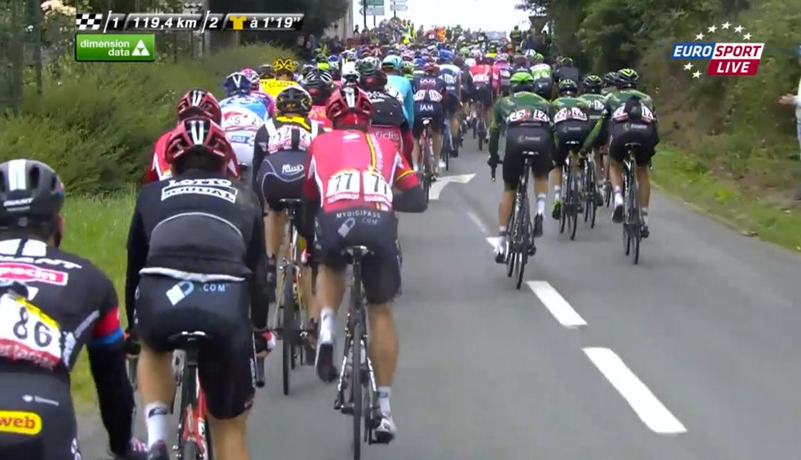 Genel klasman favorilerinin etkilenmediği kaza sonrasında toplu sprint bitişine girildi ve etabı diğer takımların sprint trenleri ardına iyi saklanan Andre Graipel aldı. Graipel’in rüzgarına giren Tinkoff-Saxo’nun haşarı çocuğu Slovak Peter Sagan “yine” ikinci oldu. Etap sonuna doğru sarı mayoyu taşıyan Tony Martin’in başını çektiği Etixx-QuickStep trenini diğer takımlar fena dağıtınca Mark Renshaw’ın ardından sprint atağı yapan Mark Cavendish istediğini bulamadı ve üçüncü oldu. Cavendish’in diğer pedallarla mücadele etmesi Graipel’e etap zaferi Sagan’a da ikinciliği getirdi.