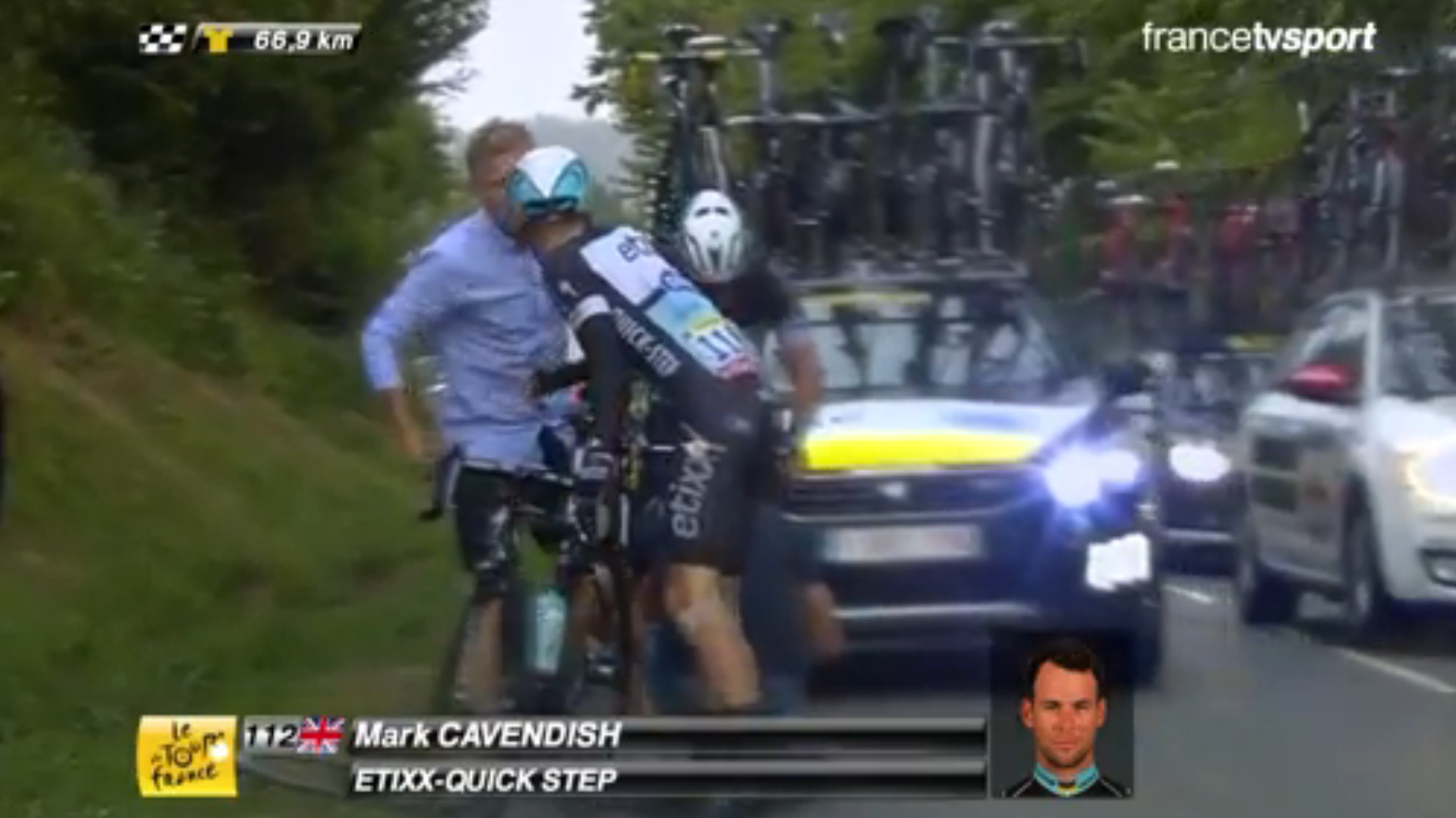 https://twitter.com/…on33/status/61878391965211852866.9 km kala mark cavendish teknik bir sorun yaşadı. takım arkadaşları öne taşımaya çalışıyor.
