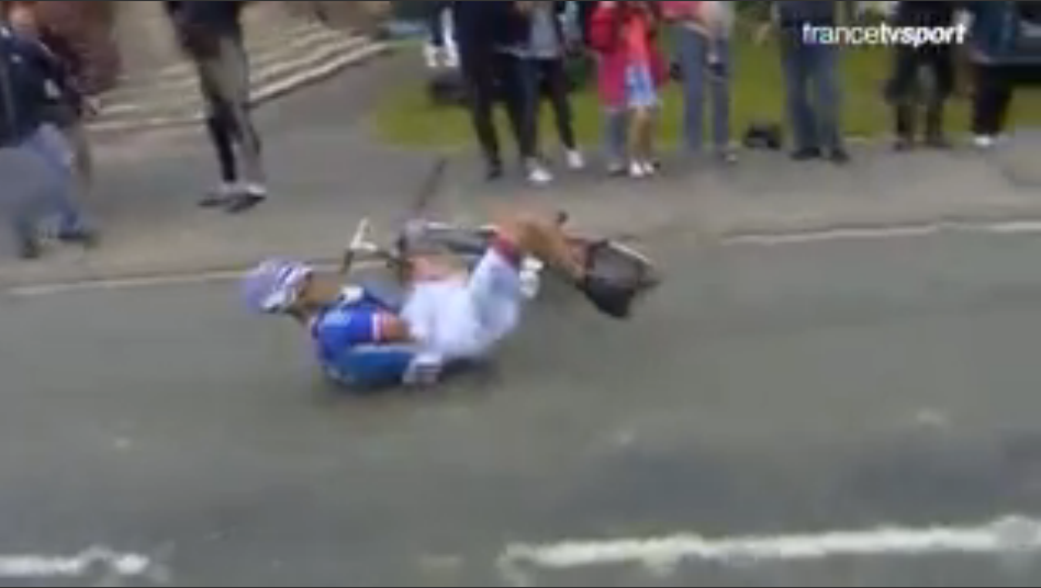 12. km’de peloton’da bir kaza oldu. 4 cofidis’li kazaya karışmış. önemli sprintlerden nacer bouhanni (cofidis, solutions crédits) abandone olmuş. ambulans ile götürmüşler. zaten fransa ulusal yol bisikleti şampiyonası’nda, son metrelerde yere düşerek sakatlanmıştı. tura katılıp katılmayacağı bile belli değil. katıldı ama 5. etaptan ötee gidemeyecek. büyük kayıp.