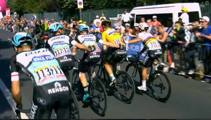Kaza son 3 km içinde olduğu için herhangi bir zaman kaybı yok ancak Ton Martin yarın devam edemeyeceği için Chris Froome yarın sarı mayoyu yeniden giyecek.