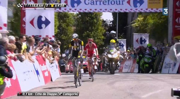 https://pbs.twimg.com/…ia/cjevunyweaaatut.jpg:large119.6 km kala, 4. kategoriden côte de dieppe (85 m yükseklik, 1.8 km uzunluk, %4 ortalama eğim) tırmanışını ilk sırada geçen daniel teklehaimanot 1 puan aldı.
