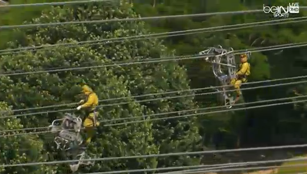 - Yağmur yağdıkça ıslanan yollarda gidon hakimiyetini kaybedenler düştükçe bizim ekran başında canımız yandı. Cofidis’ten Nacer Bouhanni çok fena düştü ve yarış dışı kaldı, ambulans ile hastaneye götürüldü.
