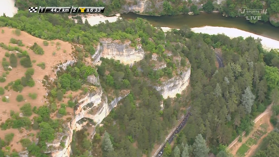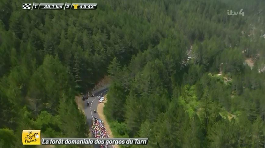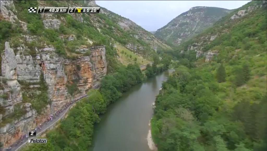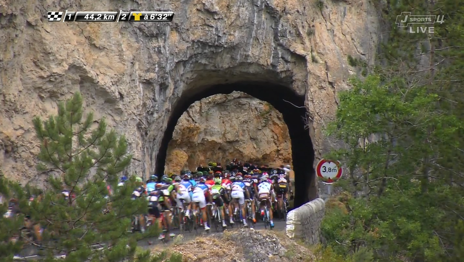 https://pbs.twimg.com/media/ckm7a84uaaeskpp.png42 km civarı, 2. kategoriden côte de sauveterre (1014 m yükseklik, 9 km uzunluk, %6 ortalama eğim) tırmanışına kaçış grubu başladı.