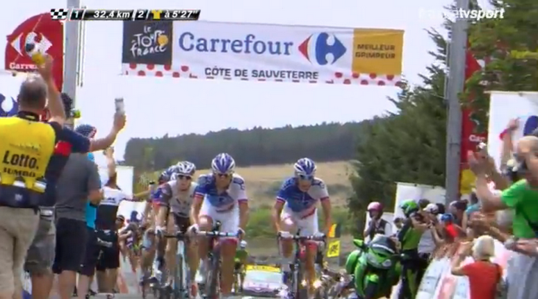 https://twitter.com/…urka/status/62241251421998284832.5 km kala zirveden ilk sırada geçen matthieu ladagnous, 5 puan alırken, jérémy roy, 3, jan bakelants, 2 ve jarlinson pantano, 1 puan aldı. peloton zirveden 5.22 dk sonra geçti.