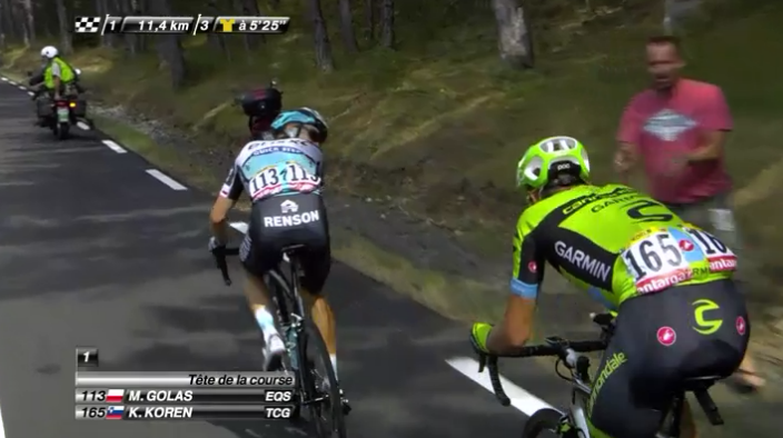 2 km kala geçilen, 2. kategoriden côte de la croix neuve (1055 m yükseklik, 3 km uzunluk, %10.1 ortalama, %10.9 max. eğim) tırmanışına koren ve golas, başladı. takip 9 sn geride.