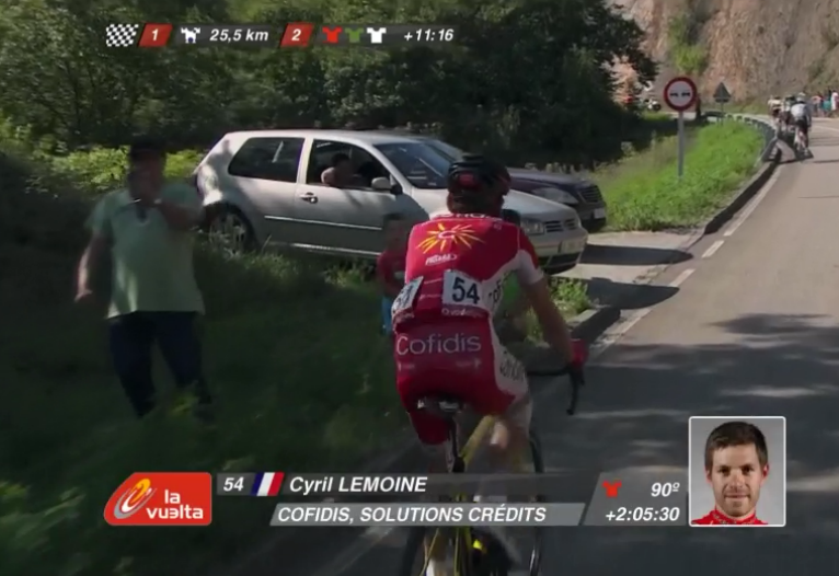 Son 1 km hiç bitmeyecekmiş gibiydi: önce Frank Schleck için, sonrasında 20 kişi ya var ya yok elit tırmanışçılardan oluşan peloton için, La Gruppa mı, onlar çoktan ruhlarını teslim etmişlerdi. Son 2,5 km kala etabın bitmesine sırasıyla peloton içinden geriye düşmeler başladı. Önce Pozzovivo, sonra Chaves ve takımından hiç ama hiç destek alamadan bu noktalara kadar gelen ve resmen Vuelta ile birlikte sürüş stili, hatta kariyeri değişen adeta kendi kaderinin dönüm noktasını yaşayan Tom Dumoulin, sonrasında Valverde geriye düşmeye başladı.
