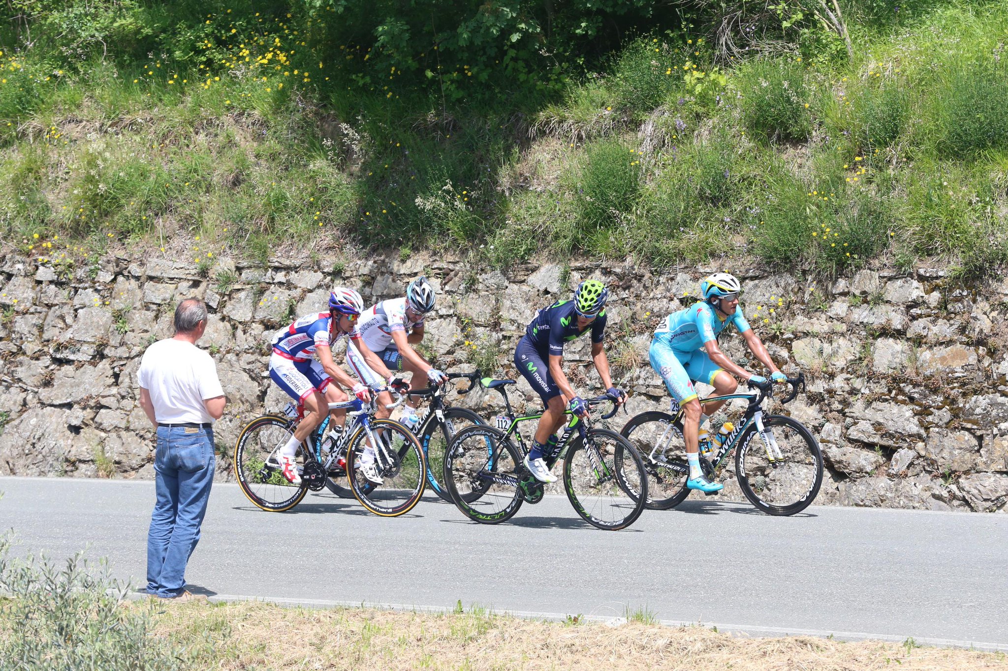 lider grubu roman kreuziger (tinkoff-saxo), darwin atapuma (bmc), davide malacarne (astana), eduard michael grosu (nippo – vini fantini), salvatore puccio ve kanstantsin siutsou (team sky), johan esteban chaves rubio (orica greenedge), sylvester szmyd (ccc ), simone stortoni (androni giocattoli ), pavel kochetkov (katusha) grubu takip ediyor. her iki grupta da ciddi yokuşçular var.