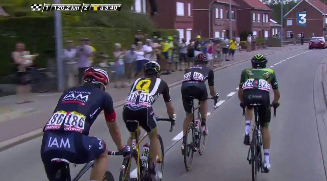 kazadan sonra, 51 km kala geçilecek olan, 4. kategoriden côte de bohissau (220 m yükseklik, 2.4 km uzunluk, %5.5 ortalama eğim) tırmanışına yavaşça başladılar.