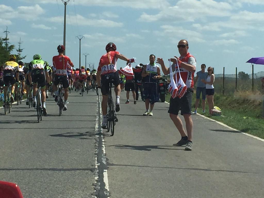 40 km kala astana ve tinkoff tempo yapmaya başladı ve öne çıktılar. rüzgarı kullanarak atak yaptılar ve peloton kopma meydana geldi. sky’a sinirlendikleri için bu atağı yapmış olabilirler. sky kopmadı ama arkada çok büyük bir grup kaldı.