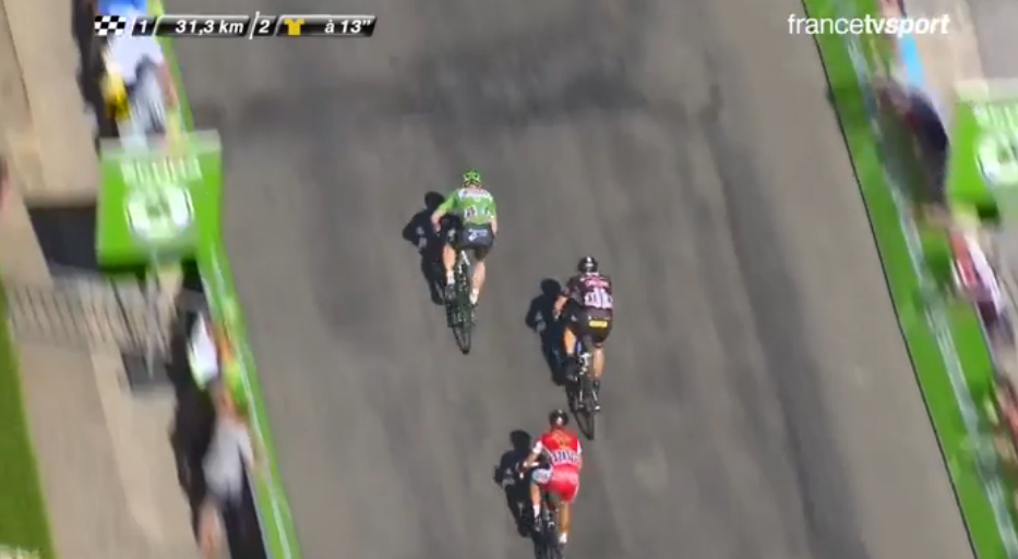 31.2 km kala geçilecek ara sprint kapısına gelirken sprintler bir anda fırladılar. andre greipel, ilk sırada geçip 20 puan aldı. john degenkolb, 17, nacer bouhanni 15 puan aldı.