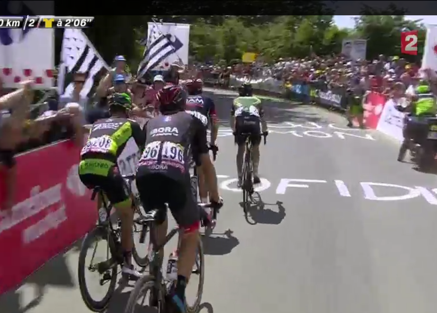 zirve finişi ile bitecek olan, 3. kategoriden mûr de bretagne (293 m yükseklik, 2 km uzunluk, %6.9 ortalama eğim) tırmanışına başlandı. ilk 500 m’de %10.5’lik, ikinci 500 m’de, %9.5’lik, üçüncü 500 m’de %5.5’lik ve son 500 m’de %2.4’lük bir eğim var.