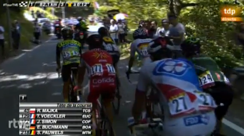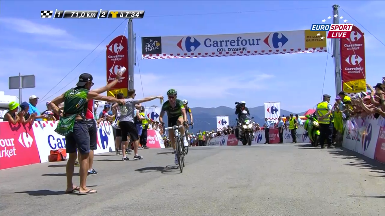 48. km’de, günün ilk tırmanış kapısından ilk sırada geçen isim thomas voeckler (europcar) oldu ve 2 puanı aldı. onu takip eden dan martin (cannondale-garmin) ise 1 puanı aldı.