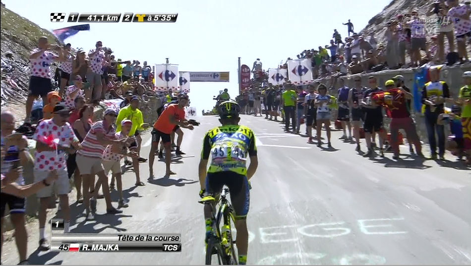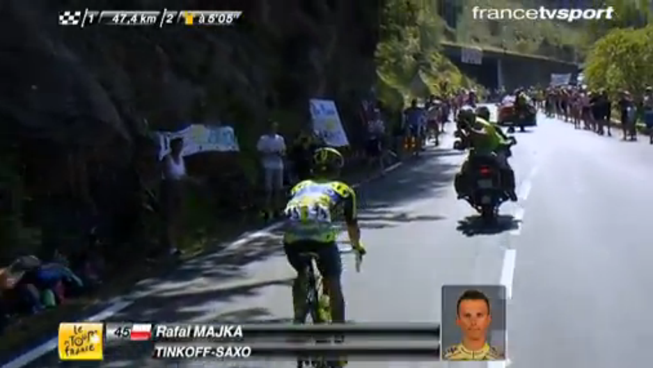 11. etap, yani 188 km’lik pau › cauterets etabını tinkoff-saxo‘dan rafal majka kazandı. tourmalet tırmanışında, etabın bitimine 48.3 km kala solo bir kaçış gerçekleştirdi ve oradan gidip etabı aldı. kariyerinin 3. tour de france etabını aldı, geçen senenin kırmızı benekli mayo sahibi. takım lideri contador’a niye yardım için beklemedi denilecek mi göreceğiz? gerçi takım sahip oleg, kutlama mesajlarını twitter’dan atmış bile.