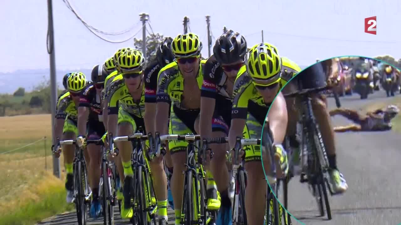 Dün sağanak yağmur ve dolu ile mücadele eden peloton bugün bunaltıcı derecede yüksek sıcak ve nemle boğuştu. Tam bir ironi! Etabın bitmesine 61 km kala peloton yüksek tempoyla seyir halindeyken AG2R la Mondiale takımının lideri Jean-Christophe Peraud bir anda yere düştü ve bir hayli takla atıp sürüklendi. Ayağa kalktığı zaman sol bacağı, kolu ve baldırı soyulmuş, üstelik asfalt yanıkları içindeydi. Doktor arabasının müdahalesi sonucu yarışa bir mumya olarak devam eden Peraud acılara tutundu adeta!