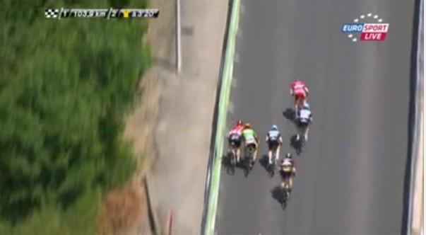 3.20 dk sonra ana grup kapıya gelince ataklar başladı. greipel sagan az daha kaza yapıyorlardı.