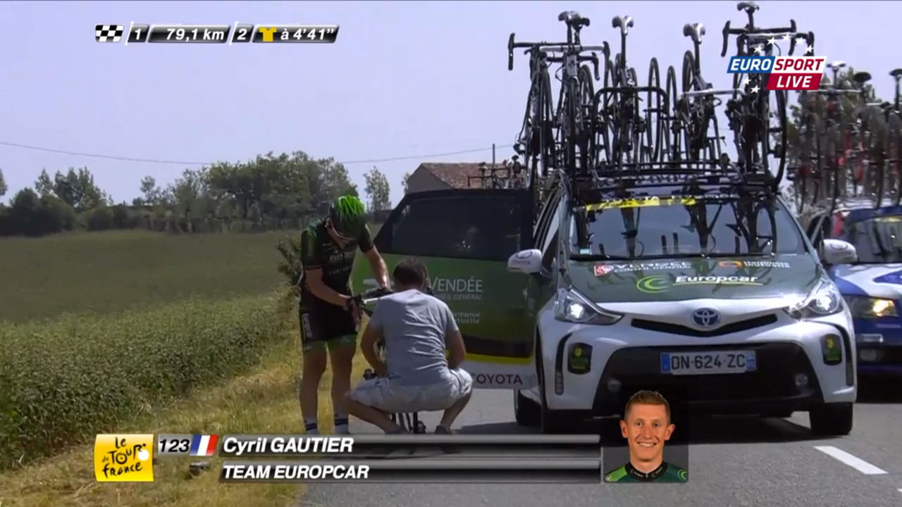 kaçış grubundan cyril gautier, lastik değiştirdi. öne yetişmeye çalışıyor.