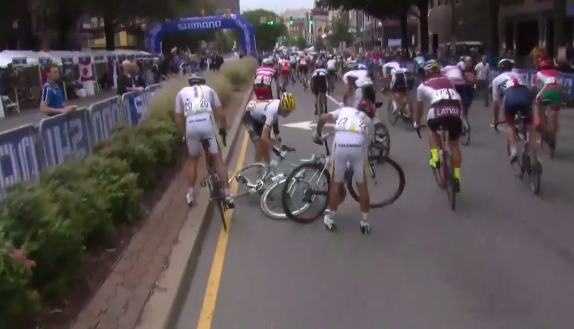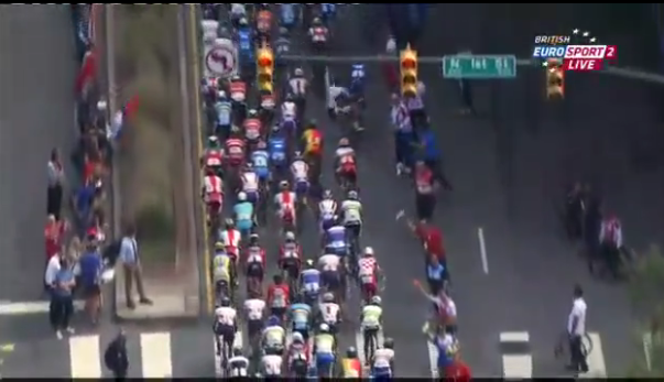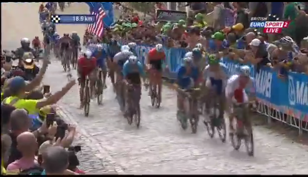 * Libby Hill tırmanışında, son 2,5 km, Greg van Avermaet, Peter Sagan 2014 Paris-Roubaix şampiyonu Niki Terpstra ve 2014 Dünya Cyclocross şampiyonu Zdnek Stybar’ı geride bırakıp öne doğru atak yaptılar