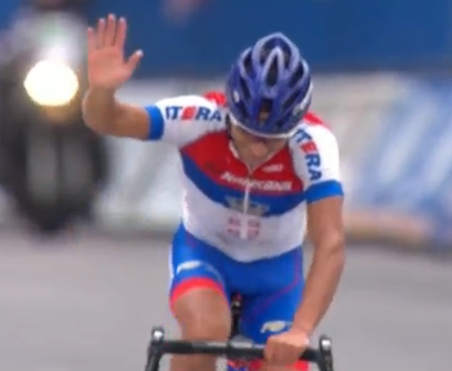 https://pbs.twimg.com/media/cp7kfulwwaent_-.jpgkaçış grubundan geriye düşen ivan stevic (srb), seyirciyi selamlayıp yarışı bıraktı.