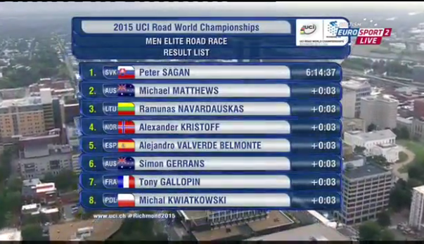 geçen sene 14. sırayı alan michael matthews gümüş, 15. sırayı alan ramunas navardauskas bronzu kazandı.